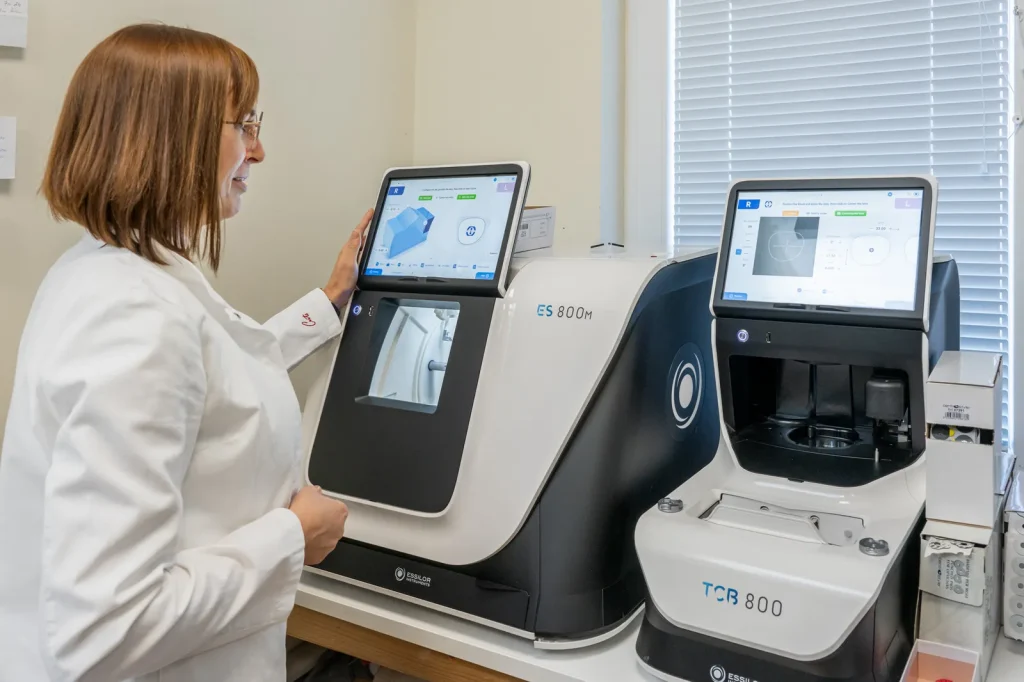 ES800M je vrhunski stroj za izradu naočala, jedan od najboljih na svijetu, s nekoliko primjeraka u Hrvatskoj. Omogućava brzu i preciznu izradu, uz mogućnost graviranja čak 400 simbola i 20 fontova na naočalnu leću. Moguće je izradit clip on nastavak za svake naočale u raznim bojama i posebnim filterima uključujući i blue bloker filter zaštutu za rad na računalu. Klijenti mogu personalizirati oblik naočala.